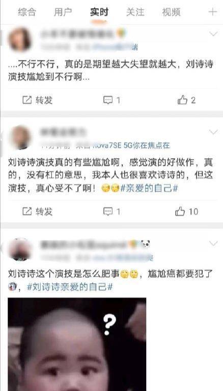 《亲爱的自己》才刚开播,大家对剧情还没有什么意见,还没有到要给编剧寄刀片的地步,观众们更加关注的是演员的演技和颜值状态。尤其是女主刘诗诗,在她身上一直都存在着演技方面的质疑,这次在剧中表现更是被拉出来大批。
