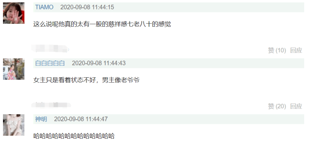 还有网友对这样的男女主实在难以接受表示:“女主只是看着状态不好,男主像老爷爷。”说像“老爷爷”已经是口下留情,还有人评价朱一龙“有一股七老八十的慈祥感”。