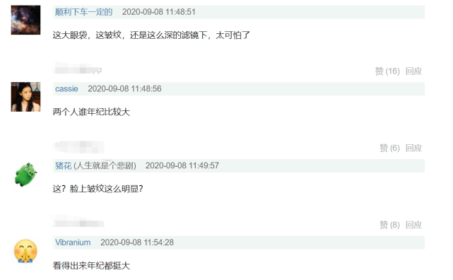 对此,网友们纷纷吐槽“这大眼袋,这眼纹,还是在这么深的滤镜下,太可怕了”、“看得出年纪都挺大”、“脸上皱纹这么明显”。