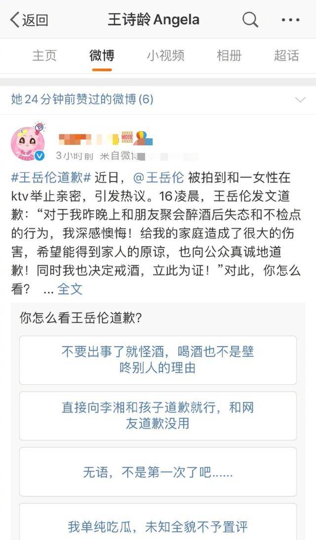 王岳伦的女儿王诗龄则被网友发现点赞了王岳伦道歉的投票动态,她的真实心情如何外人难以得知。面对父亲铺天盖地的疑似出轨新闻,王诗龄总免不了受到影响。